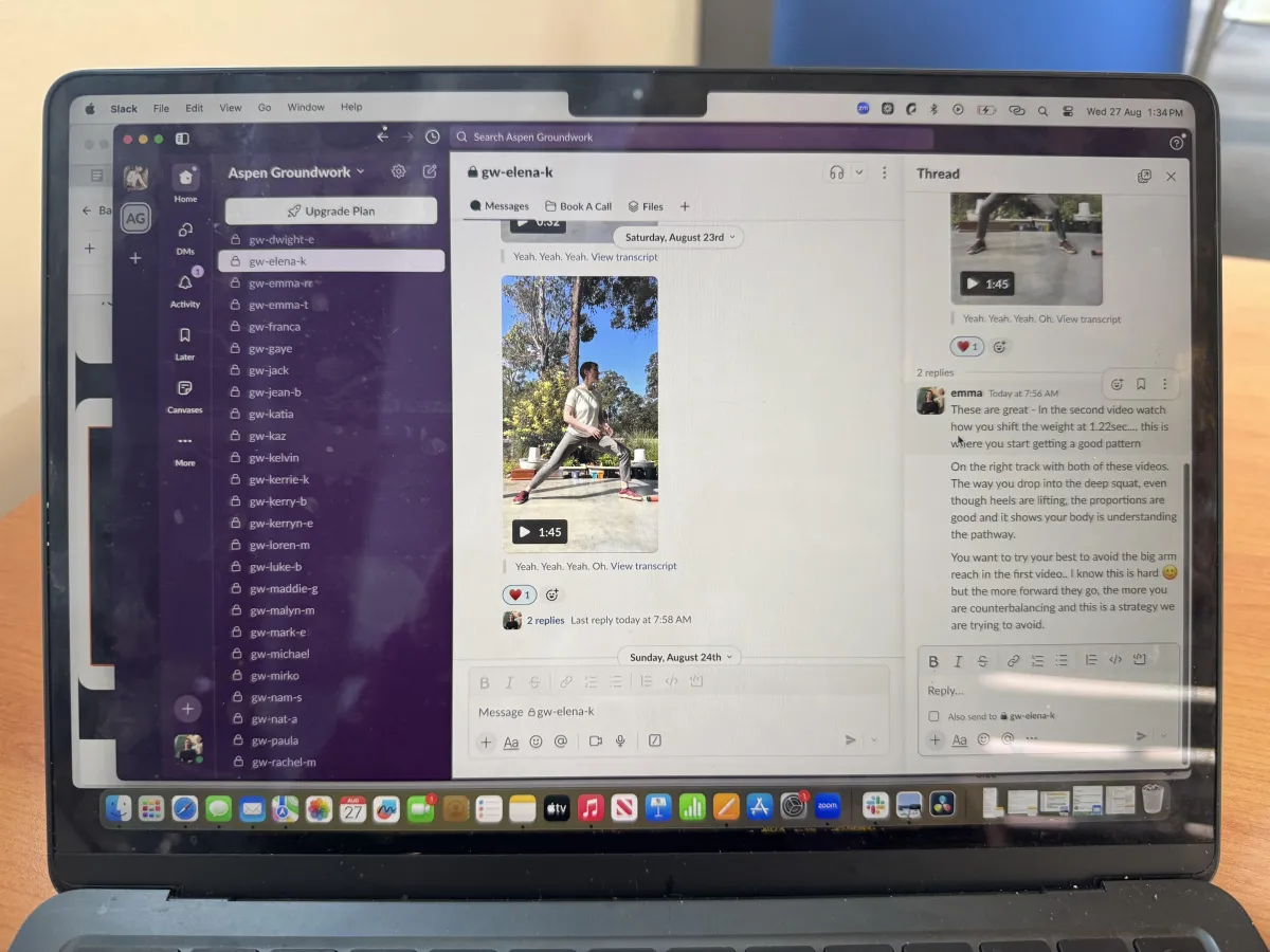 Being able to ask questions as they arise is crucial to learning how to change your movement habits. When you join the The Upward Spiral you will have access to our Slack Channel allowing you to post videos, ask questions and seek extra help any day through the 4 month journey.