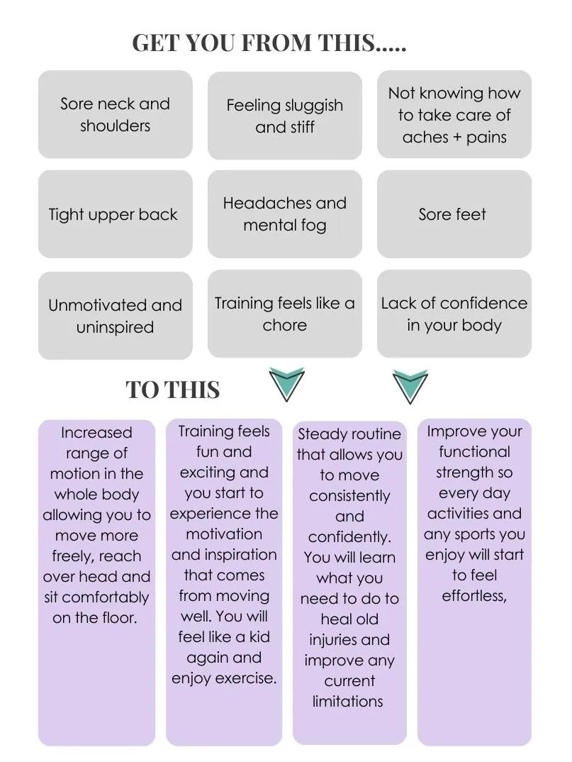 All you need to do is show up and be guided back to mobility and strength in all areas of your body.